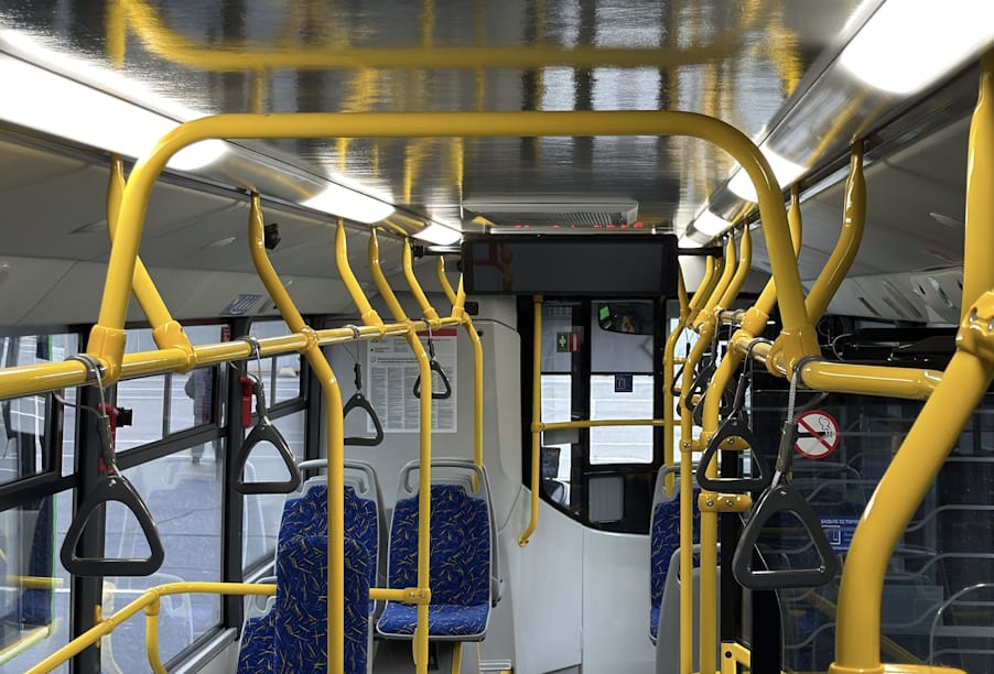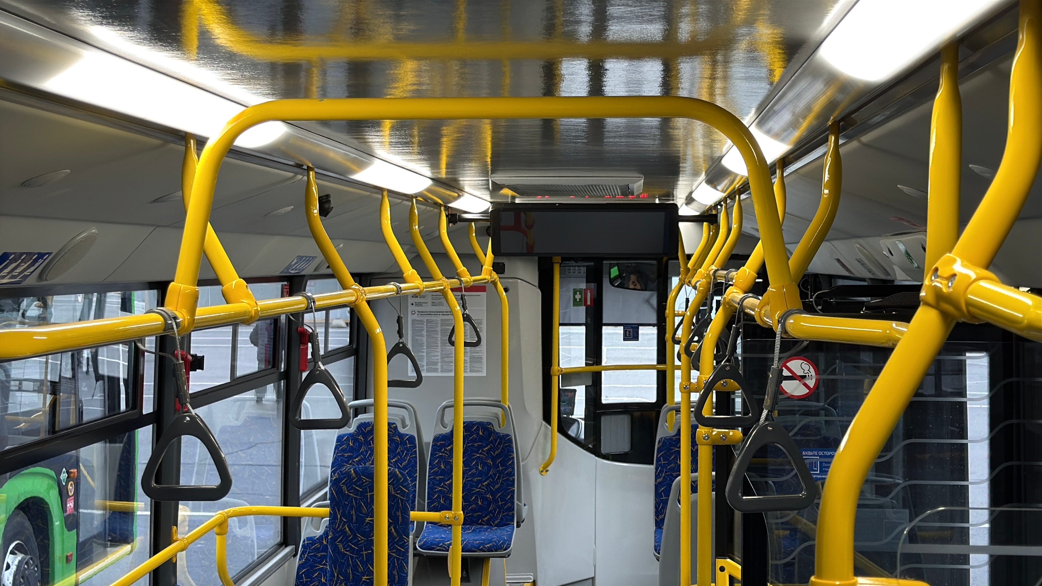 Для удобства пассажиров установлены современные системы кондиционирования, электронные табло с информацией о маршруте и остановках, а также медиапанели, которые позволяют транслировать важную информацию и рекламные сообщения.